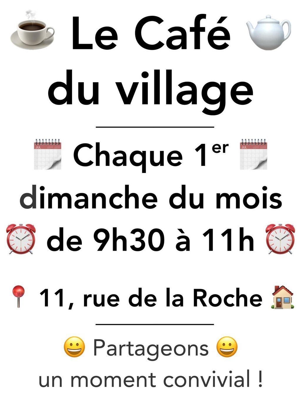 Le prochain café ☕ du village a lieu le dimanche 🗓 1er février.