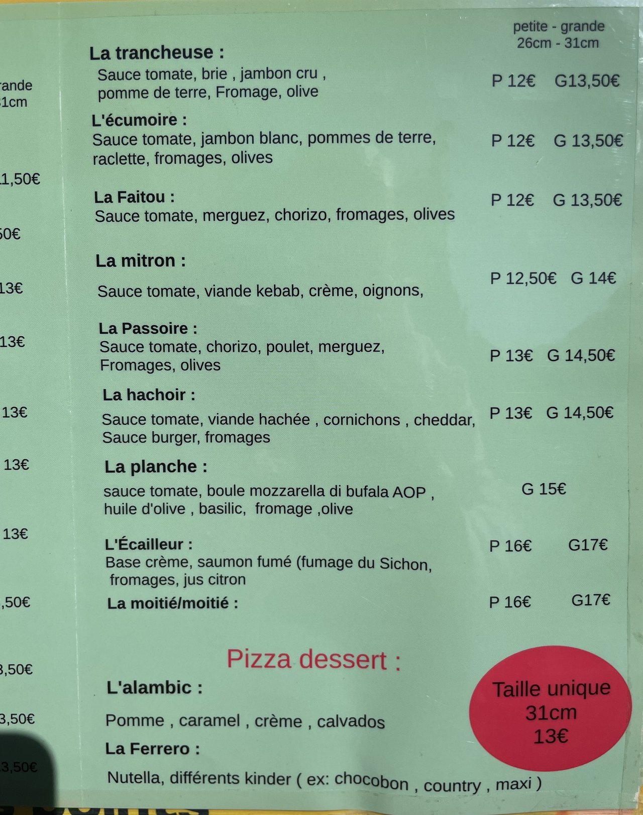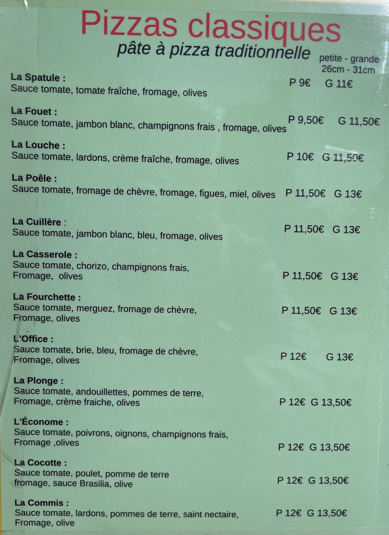 Ci joint en photo les différentes pizzas proposées par A Table pour vous aider à choisir.