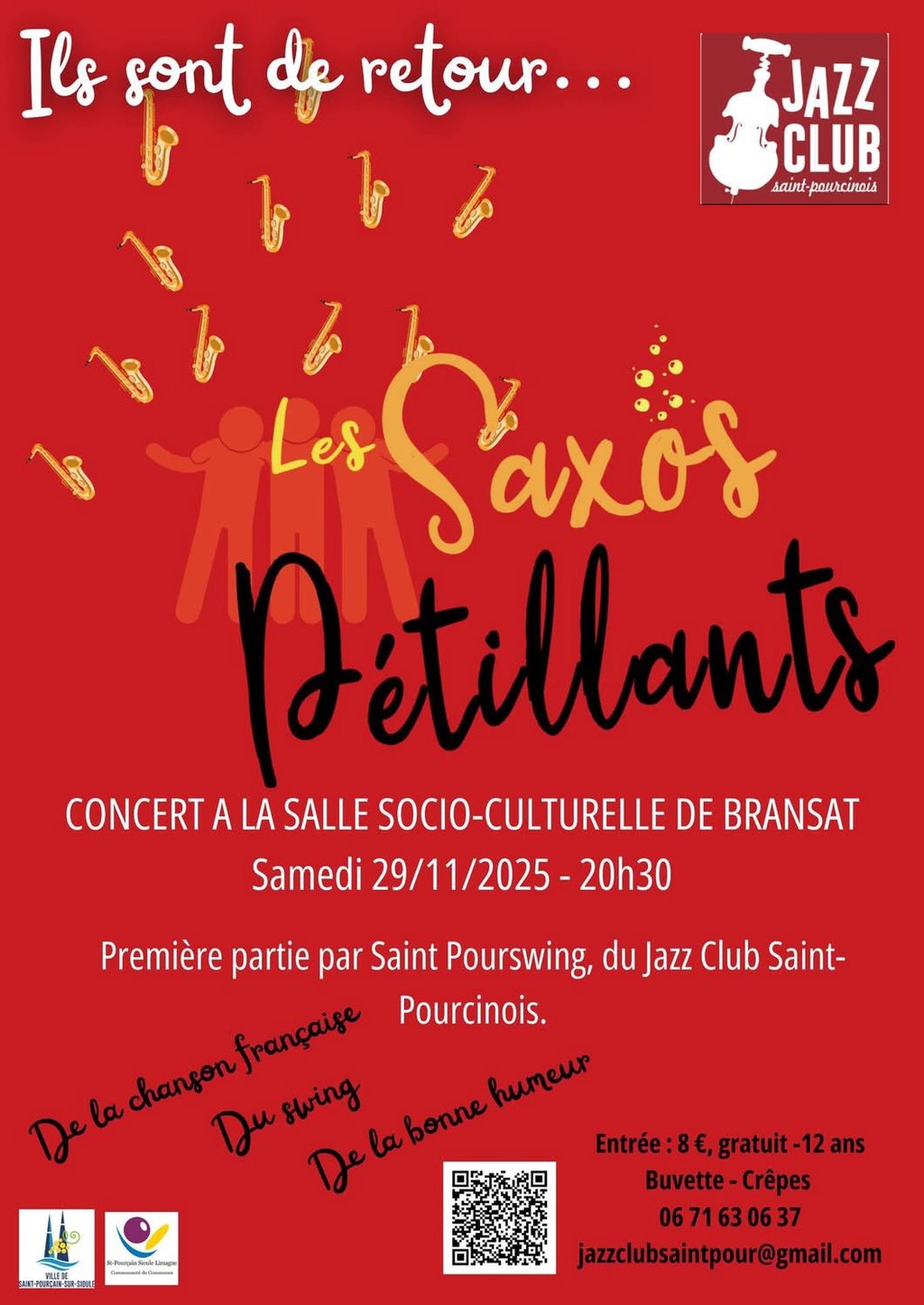 Les Saxos Pétillants, bande de joyeux gais lurons, débarquent, armés de leurs saxophones, pour accompagner les enfants du RPI. Ce concert sera malheureusement réservé aux parents, car la capacité de la salle ne nous permettra pas d'élargir au public.